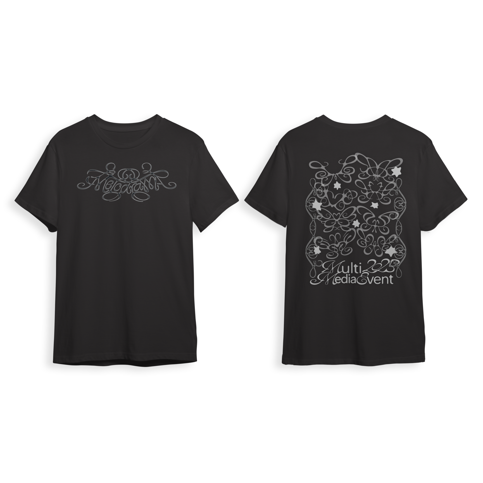 PRE-ORDER Your MME 2025 Tee ShirtMulti Media Event I & II in MICA’s fiber department offers a year-long engaging and collaborative experience for students working in experimental fashion and who are interested in exploring art that orients itself towards the body. Each year, the class culminates in a performance so that the students’ collections may have the opportunity to come to life. The theme for 2025 is “MELODRAMA” and this is the commemorative tee-shirt designed by Andy Li (MFA/ Graphic Design ‘26 and Charlotte Chu (BFA/ Graphic Design ‘25). Each butterfly on the back of the shirt is composed of the initials of each of the 8 MME 2025 designers: Lailah Eloise-Munford, Shweta Balakrishnan, Olivia Zheng, Rhi Ragone, Mo Green, Haley Darling James, Quinn Spence and Abel Reyes. Instructor and Production Director: iliana quander 100% Cotton Standard Fit |